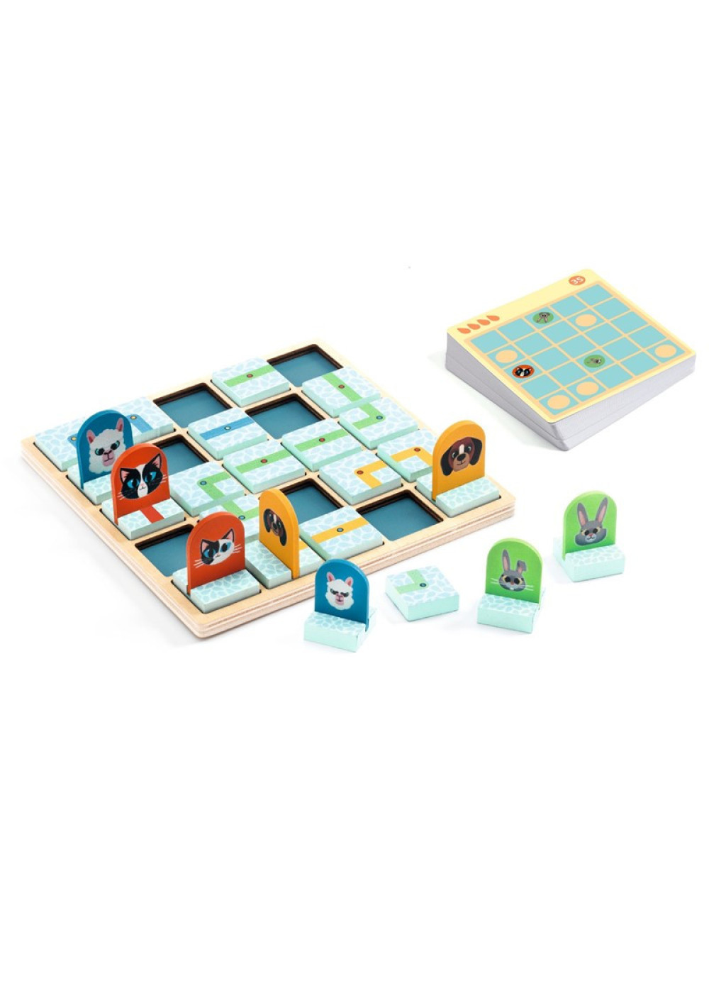 Un juego lógico para niños desde 5 años. Ayuda a animalitos dispersos a reencontrarse con sus padres construyendo el único camino posible. Incluye 40 desafíos en 4 niveles, fichas de camino, tablero de madera y guía de soluciones. Compacto, portátil y fabricado en madera FSC®, ofrece diversión, lógica y aprendizaje en cada partida.
