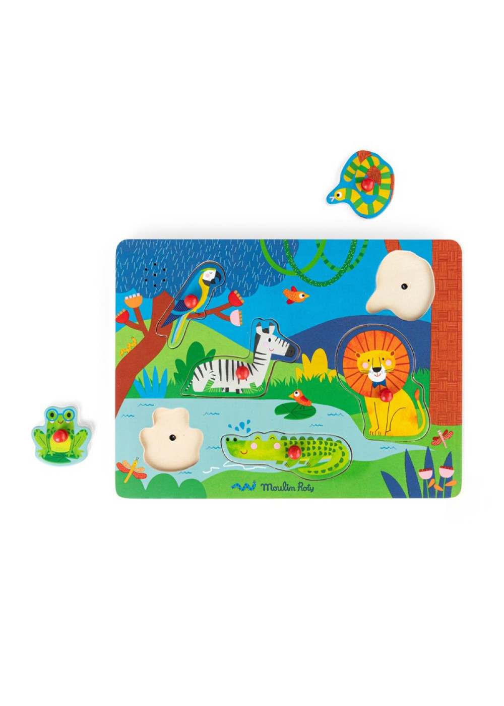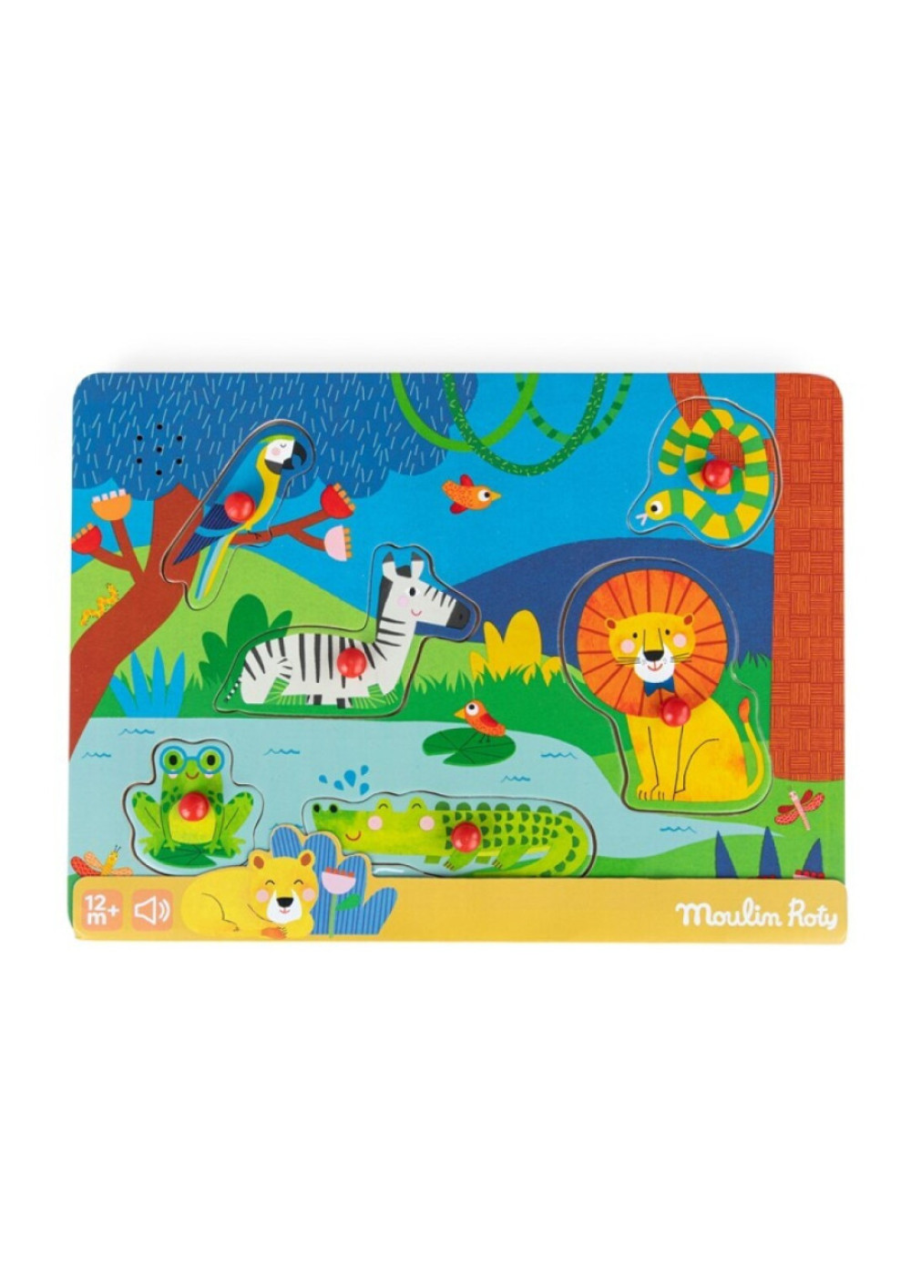 Descubre la magia de aprender jugando con el Puzzle Sonoro de Madera . Este encantador rompecabezas presenta un paisaje animado y piezas con forma de animal que, al colocarse en su lugar, activan el sonido correspondiente — emitidos al insertar cada pieza—, despertando la curiosidad sensorial de los más pequeños. Con unas medidas compactas de 30 × 22 × 1,8 cm, es perfecto para manos pequeñas de niños desde los 18 meses.