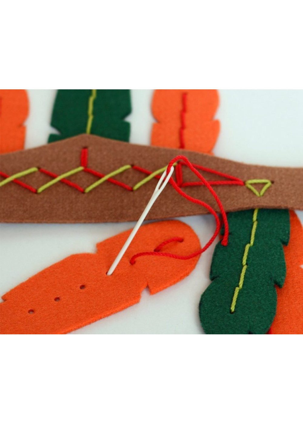 El kit incluye todo lo necesario dentro de una bonita caja de cartón reciclado: Piezas de fieltro con los agujeros ya troquelados, Instrucciones muy detalladas pero sencillas y con ilustraciones, Hilos de colores, Aguja de seguridad con punta redondeada