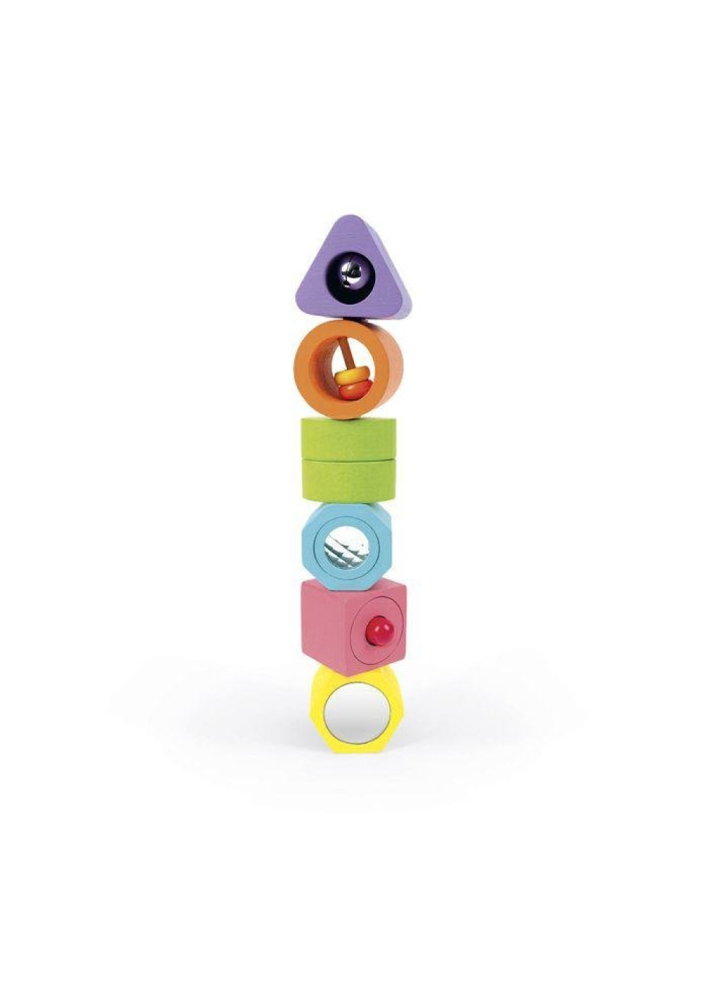 Magnífico puzzle para los más pequeños para enseñarles a reconocer las formas y ayudarles a desarrollar su motricidad fina mientras se divierten. Cada cubo tiene una forma, un color y una función diferente: cascabel, caleidoscopio, efectos sonoros, pío-pío, sonajero y espejo. Este puzzle sensorial estimulará todos los sentidos de su hijo(a). Pintura al agua