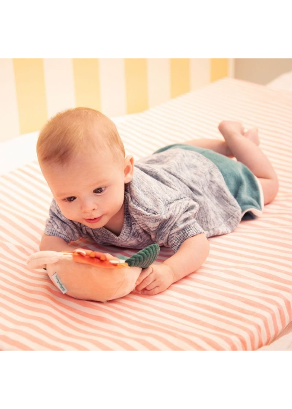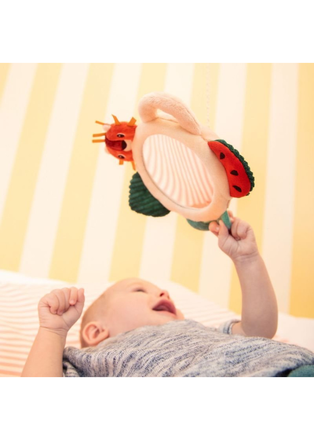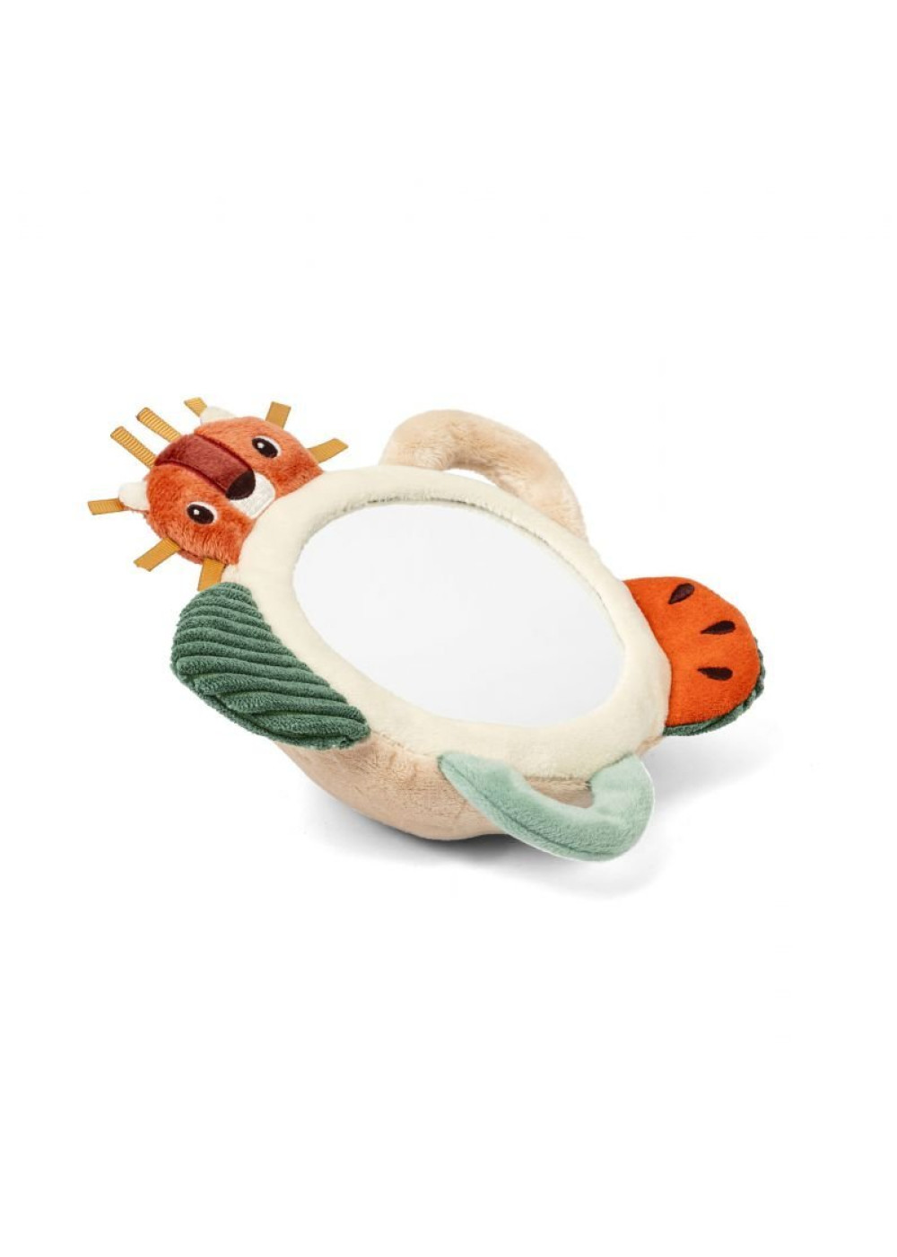 Un espejo sorprendente rodeado de suaves actividades para estimular al bebé. Boca abajo, se divierte descubriendo su reflejo y explorando los pequeños juegos sensoriales que lo rodean. Además, gracias a un pequeño lazo, el espejo también puede colgarse y acompañar al bebé a todas partes.