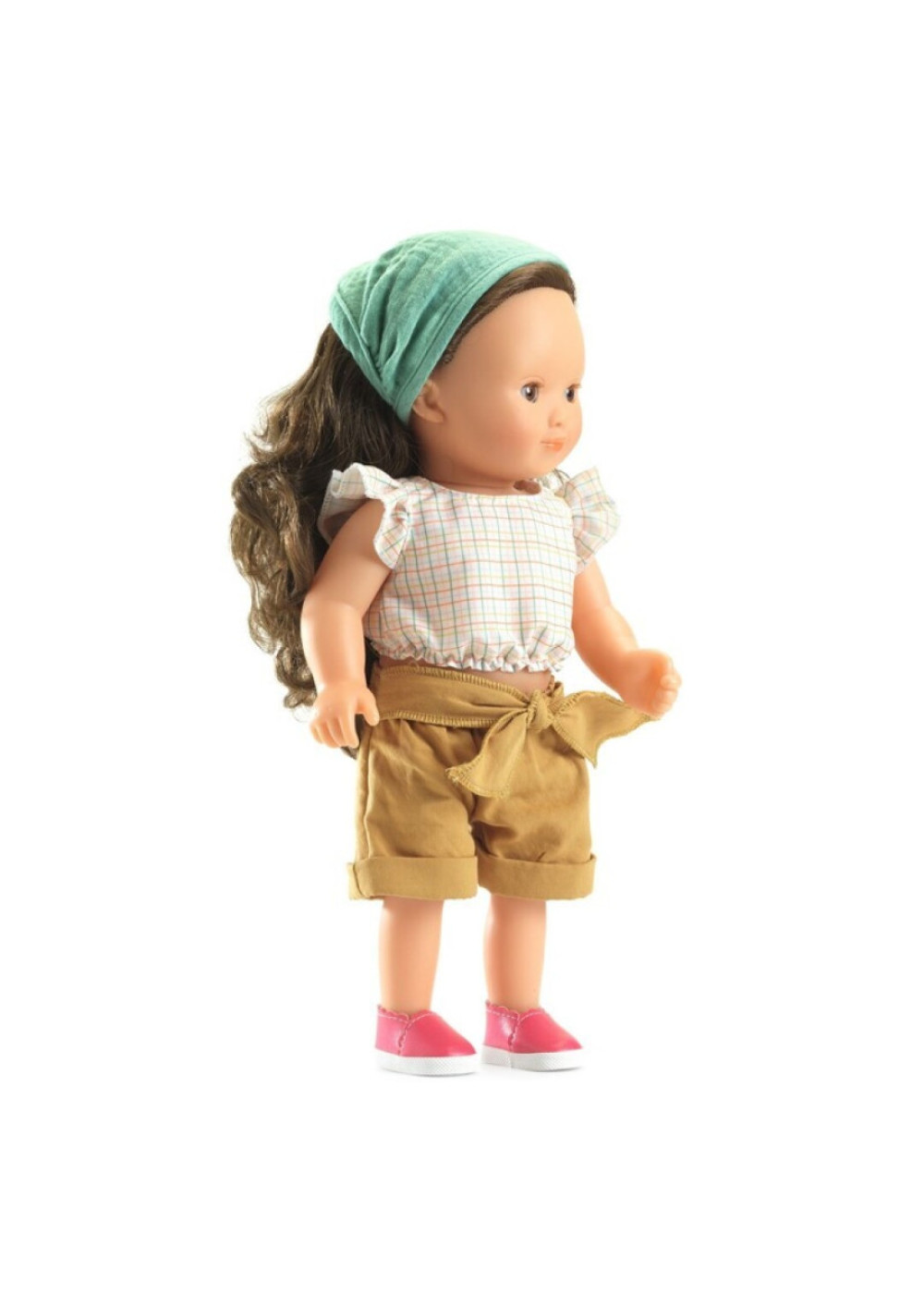Joséphine es una muñeca encantadora hecha para acompañar la imaginación de niños desde aproximadamente 3 años. Con sus 32 cm de altura, se mantiene firme por sí sola y permite jugar con confort. Su cuerpo en vinilo suave, sus ojos que se cierran al recostarla y su cabello largo castaño (fácil de peinar) aportan realismo y ternura. Viste un conjunto moderno: top detallado, bermudas con lazo, pañuelo de cabeza y espadrilles. Ideal para el juego de roles que estimula la empatía, la expresión personal y habilidades motrices.