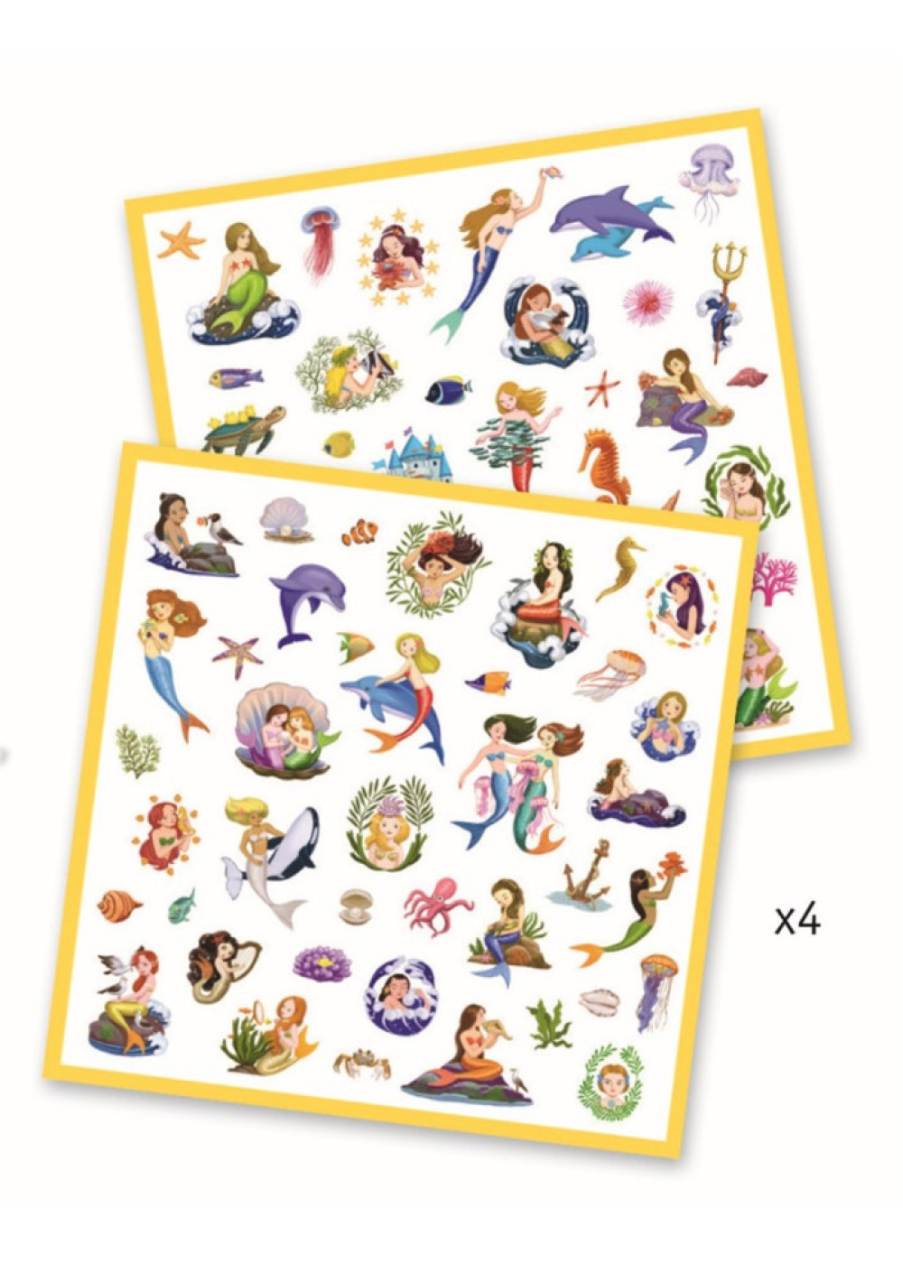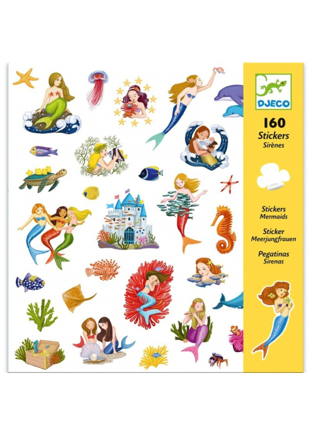 -Un estuche de 160 pegatinas para sumergirse en el fascinante mundo de las sirenas. Animales submarinos, hermosas sirenas y elementos decorativos… ¡No falta nada! El niño pega libremente las numerosas pegatinas para componer bonitas escenas bajo el mar o decorar lo que quiera.