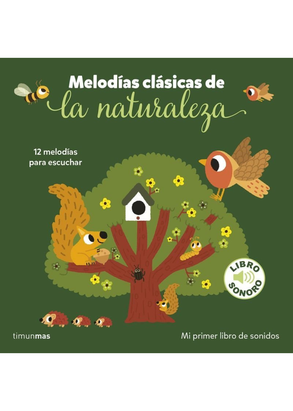 Encuentra en cada doble página el botón que hará sonar una música clásica relacionada con la naturaleza. Una alegre ilustración acompaña cada melodía y hace que este recopilatorio de 12 composiciones, especialmente pensado para niños y niñas, sea único. Mira cómo pasturan las ovejas y vuelan las golondrinas mientras suena Pastoral de Beethoven. Escucha como pían los pajaritos con la sinfonía de La Primavera de Schumann, y como chapotean las ranitas en Los juegos de agua de Ravel. Déjate llevar por el viento de la melodía de El sueño de una noche de verano de Mendelssohn, por el canto de una alondra en la música de Las estaciones de Chaikovski y del cucú de la sinfonía de Titán de Mahler. Baila con El carnaval de los animales de Saint-Saëns, fíjate en el revoloteo de las abejas de Franz Schubert, y en cómo cambian los colores de las hojas con Las cuatro estaciones de Vivaldi. Ahora llega la nieve con El rincón de los niños de Debussy y, por último, disfruta de un amanecer en la sabana con Peer Gynt de Grieg y de la calma de la luz de la luna con Nocturno n.º1 de Chopin. ¡Un inspirador recopilatorio de melodías de música clásica!