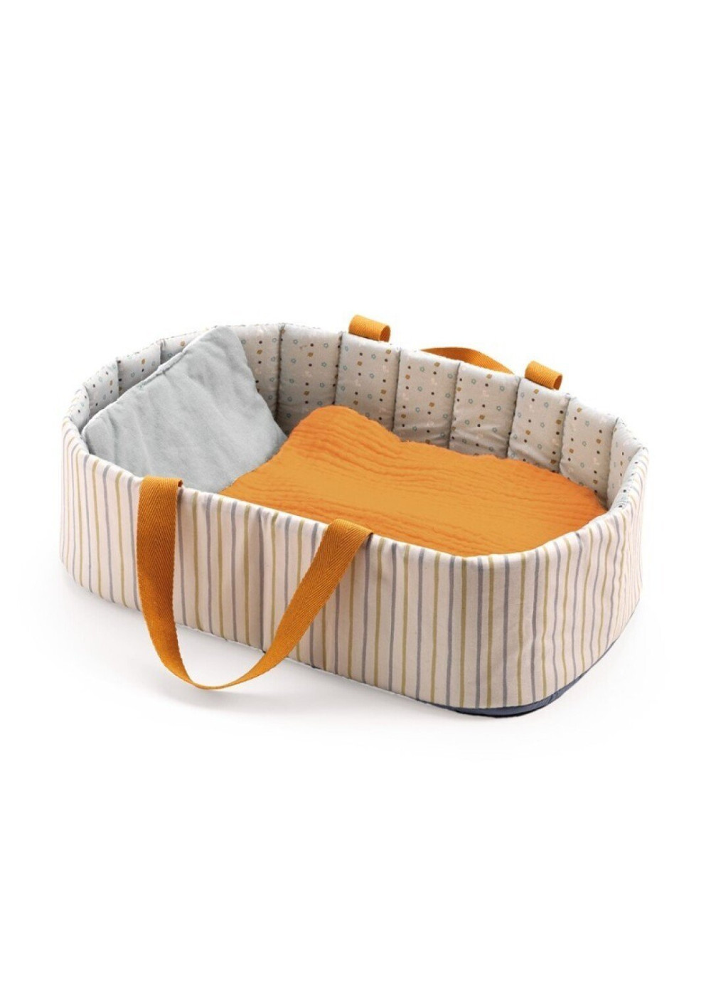 Un capazo ligero y práctico con asas flexibles para llevar la muñeca a todas partes. Ultracómodo con una manta suave y una almohada para que el bebé duerma bien abrigadito.
