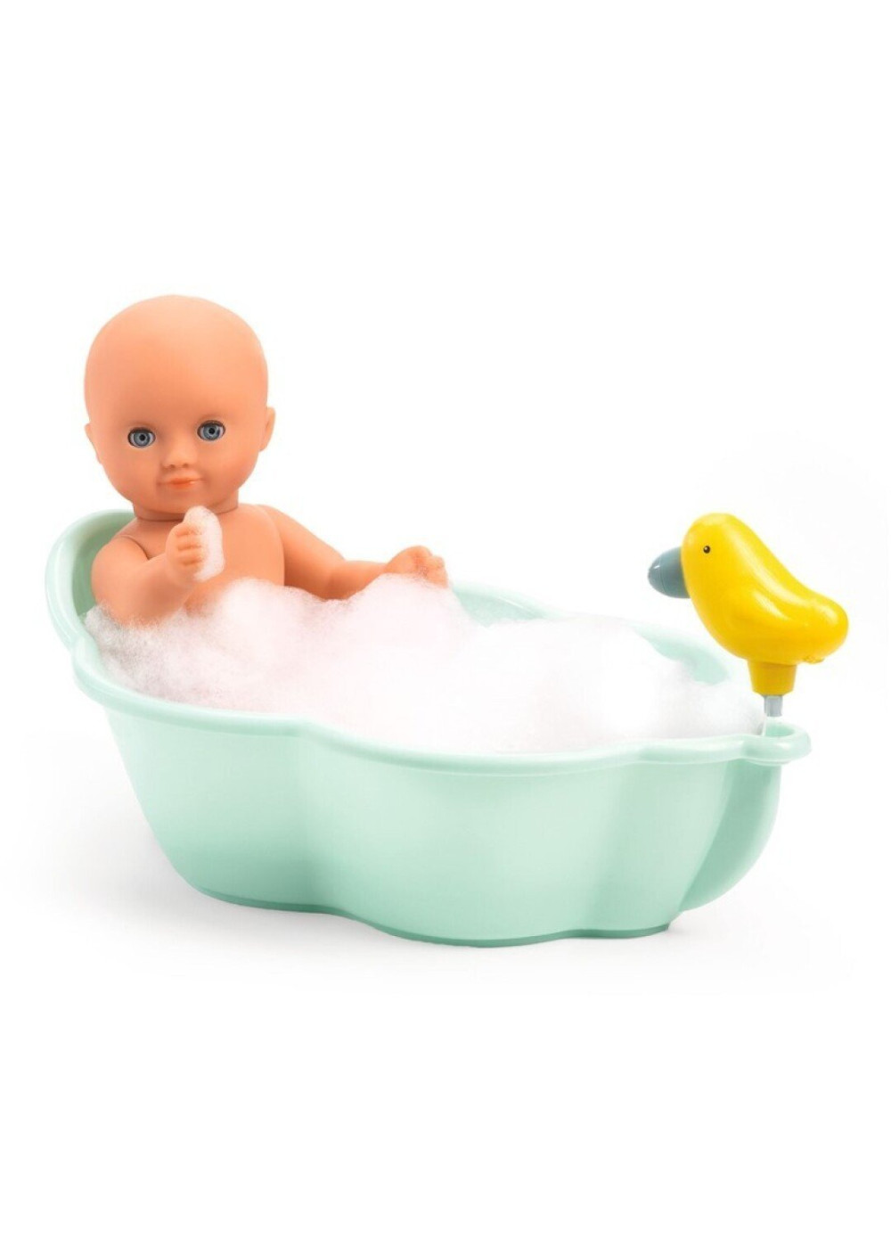 -¡Es la hora del baño! La bañera tiene forma de concha con una alcachofa de pájaro perfecta para pasar un rato agradable con tu bebé. La ducha funciona como un rociador. Cuando se bombea el agua, sale por el pico del pájaro. Cuando termina el baño, la bañera se vacía y se aclara con agua limpia.