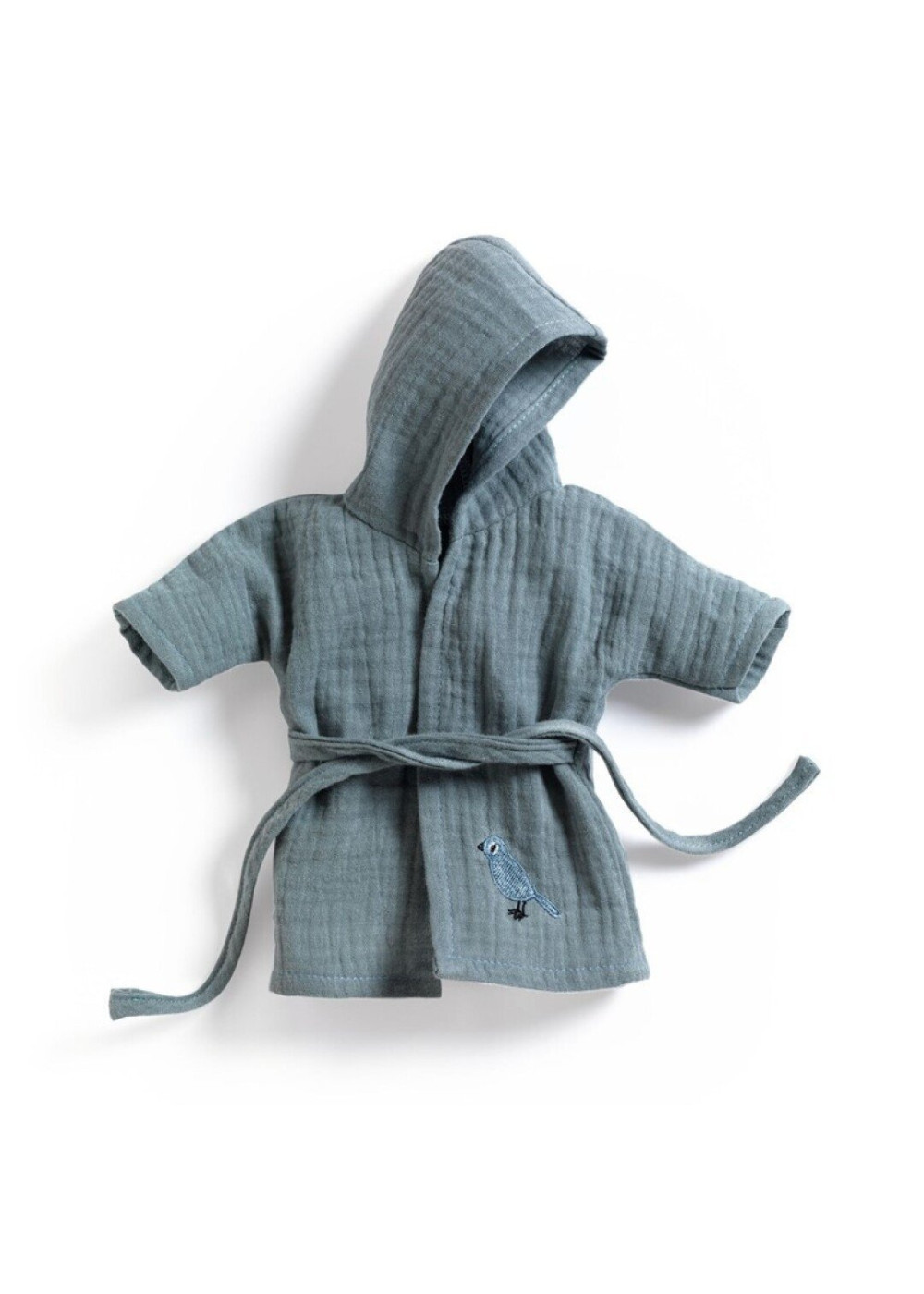 -Un albornoz bordado de doble gasa, ideal para secar a la muñeca después del baño.