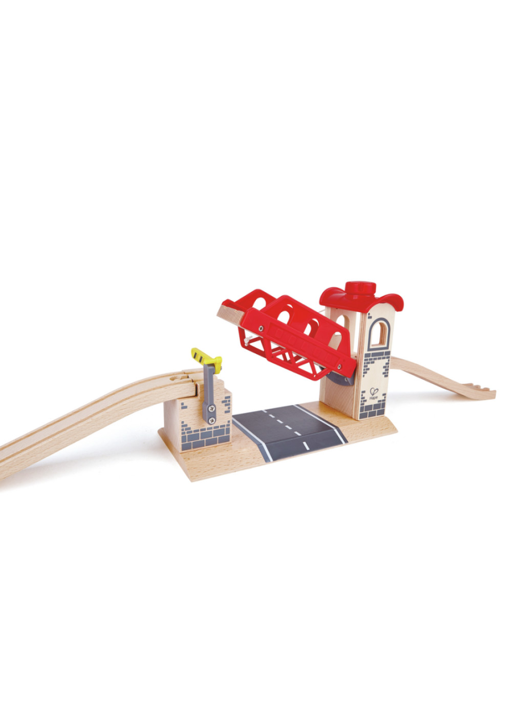Este puente levadizo permite el paso seguro de coches y camiones de gran tamaño cuando no hay trenes rodando sobre ellos. Puedes subir y bajar el puente levadizo con el cabrestante del techo.