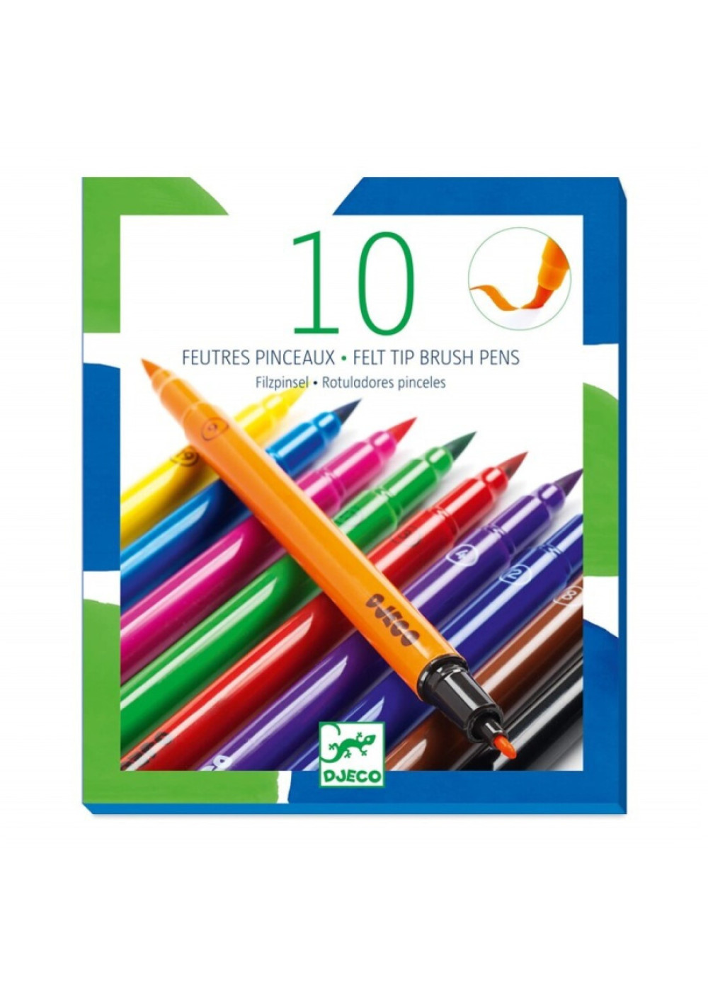 -Un estuche de 10 rotuladores de doble punta de colores brillantes y envolventes. Cada rotulador tiene una punta fina y una punta de pincel para adaptar la precisión del trazo. Material de calidad de bellas artes para crear las obras más hermosas con total libertad.