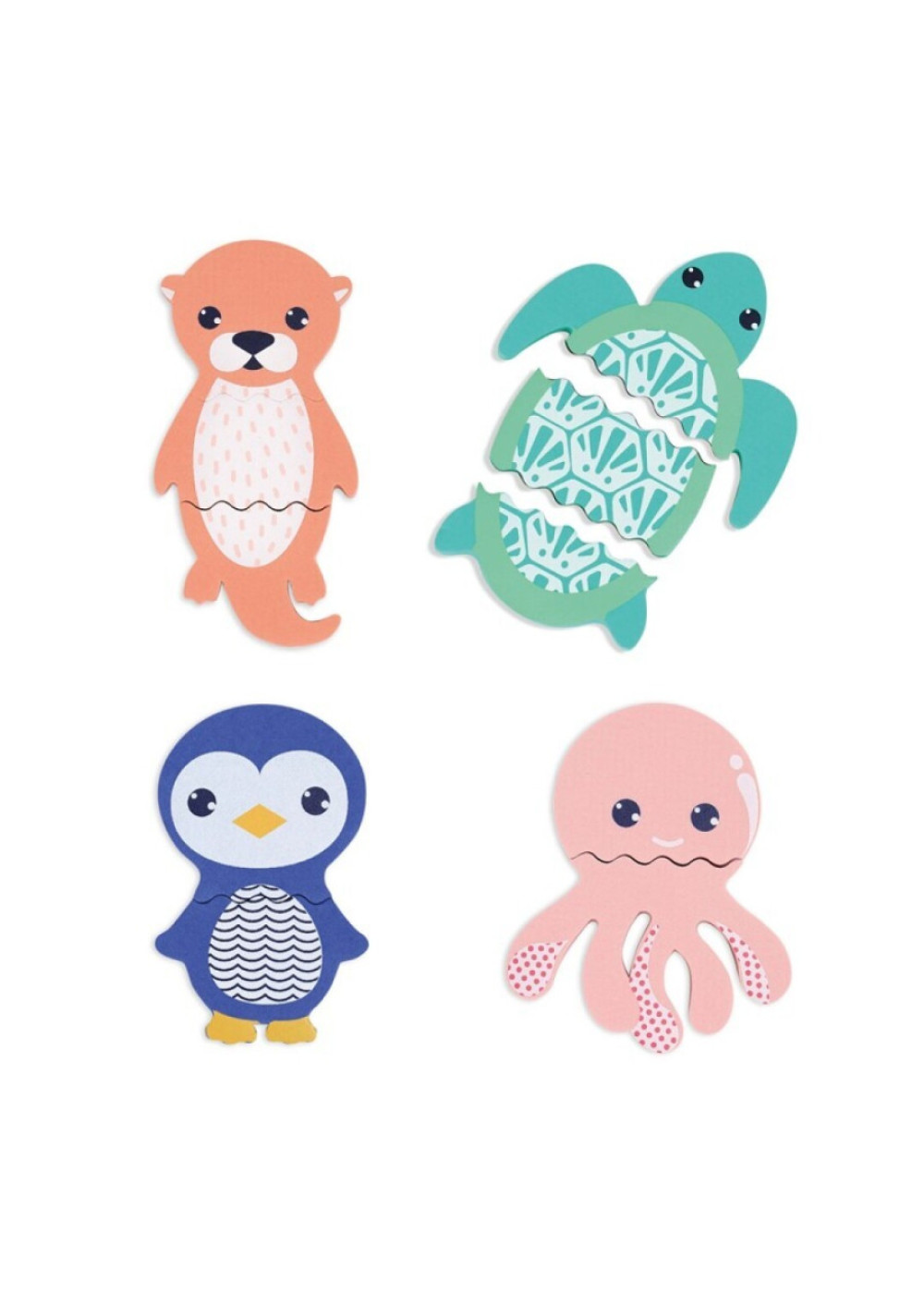 ¡Este juego también es el primer rompecabezas de tu hijo! Las diferentes piezas son intercambiables, lo que permitirá a tu pequeño dejar volar su imaginación combinando la cabeza del pingüino con el cuerpo del pulpo, por ejemplo. Este divertido concepto estimula la creatividad al tiempo que promueve el desarrollo de la motricidad fina.