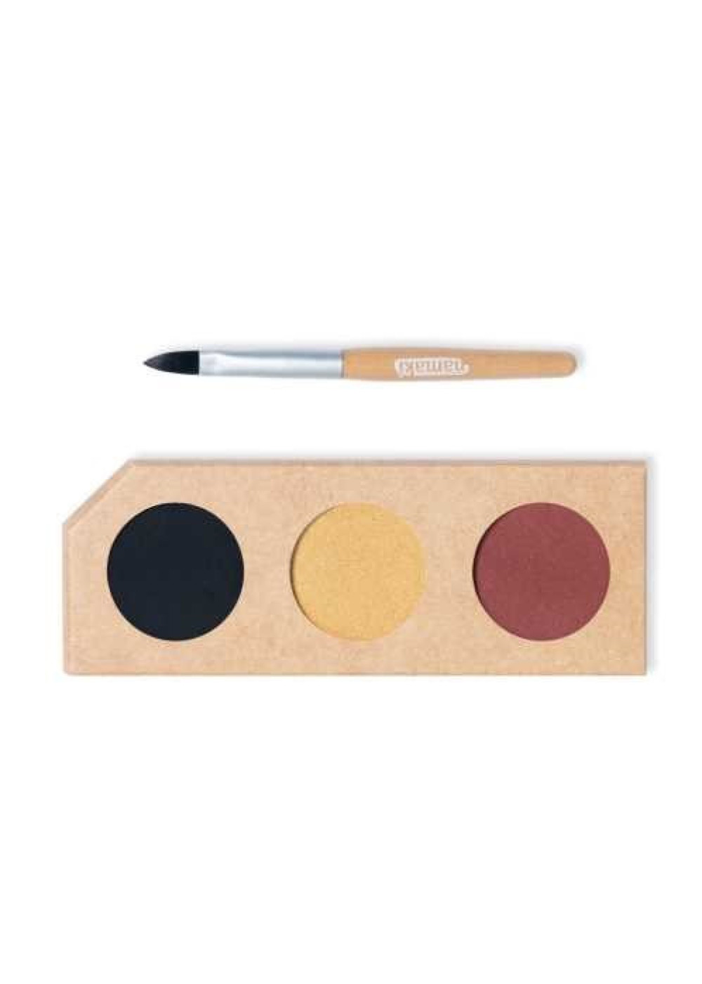 Modo de empleo: El maquillaje se usa con agua y se aplica sobre la piel con el pincel. El desmaquillado se realiza fácilmente con agua tibia y un poco de jabón. Después de su uso, deje el pincel y la paleta de sombras que se sequen antes de guardarlos en la caja.