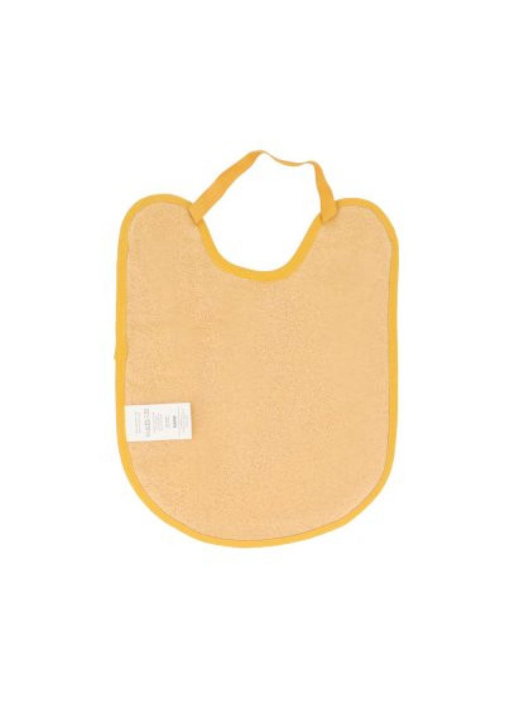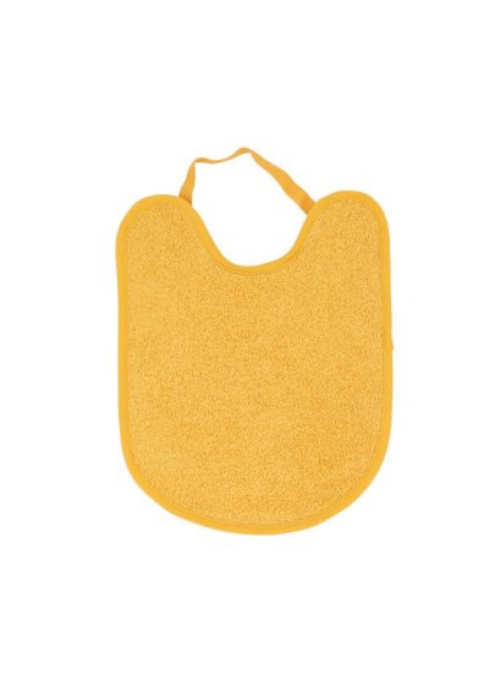 babero de algodón con una cara de toalla de rizo y la otra plástificada con EVA para evitar que traspase la comida o los líquidos a la ropa cuando cae sobre ella.
