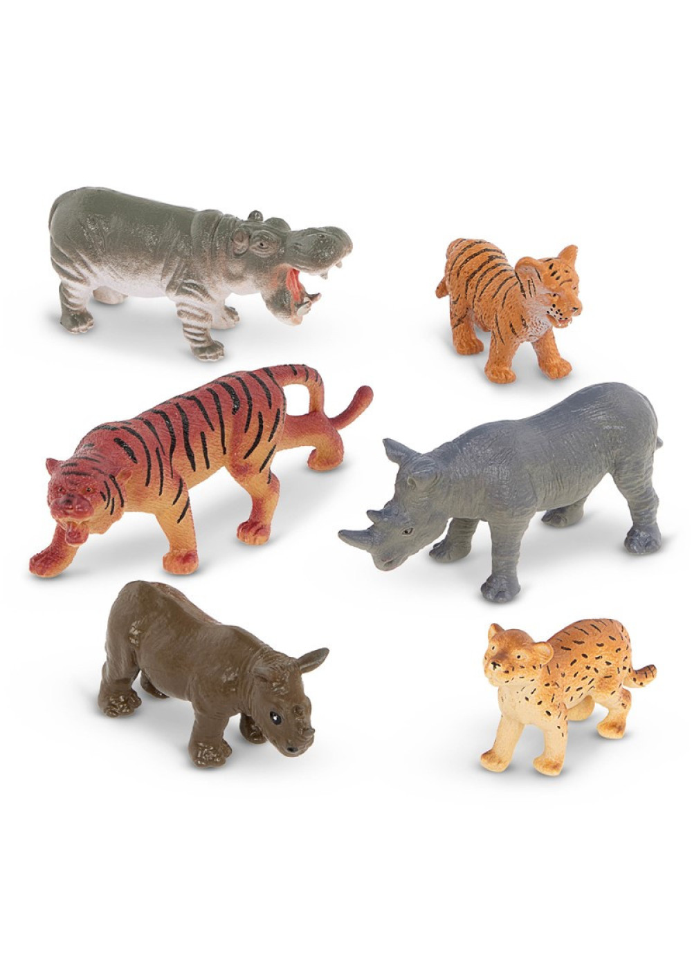 Set de 6 figuras de animales salvajes (adultos + crías). Alta calidad, diseño realista y durable. Ideal para aprender jugando.