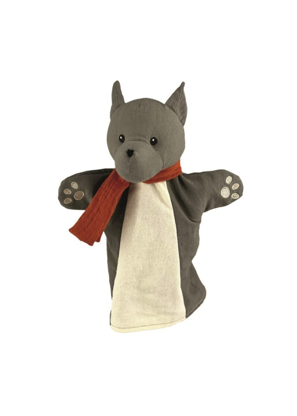 ¡Aquí viene el lobo! En algodón natural bordado, este encantador títere de mano está listo para participar en todo tipo de historias maravillosas. El personaje imaginario ayudará a tu hijo a usar su imaginación y a desarrollar su mente creativa.