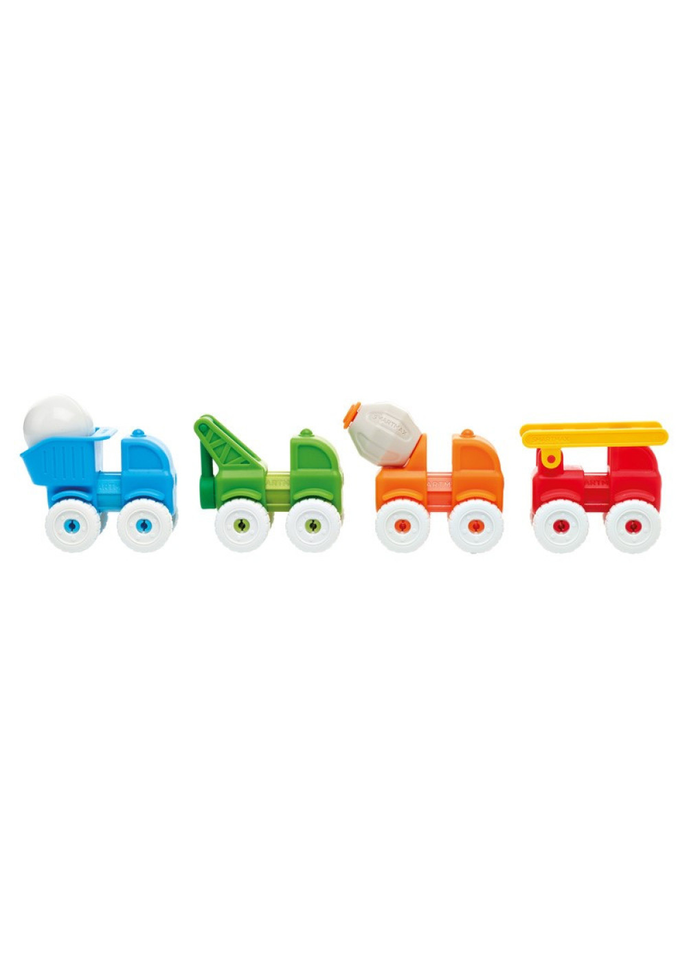 4 barras magnéticas, 1 bola magnética y 8 piezas de vehículos para estimular la fantasía y creatividad del niño, con una mejora coordinación mano-ojo.