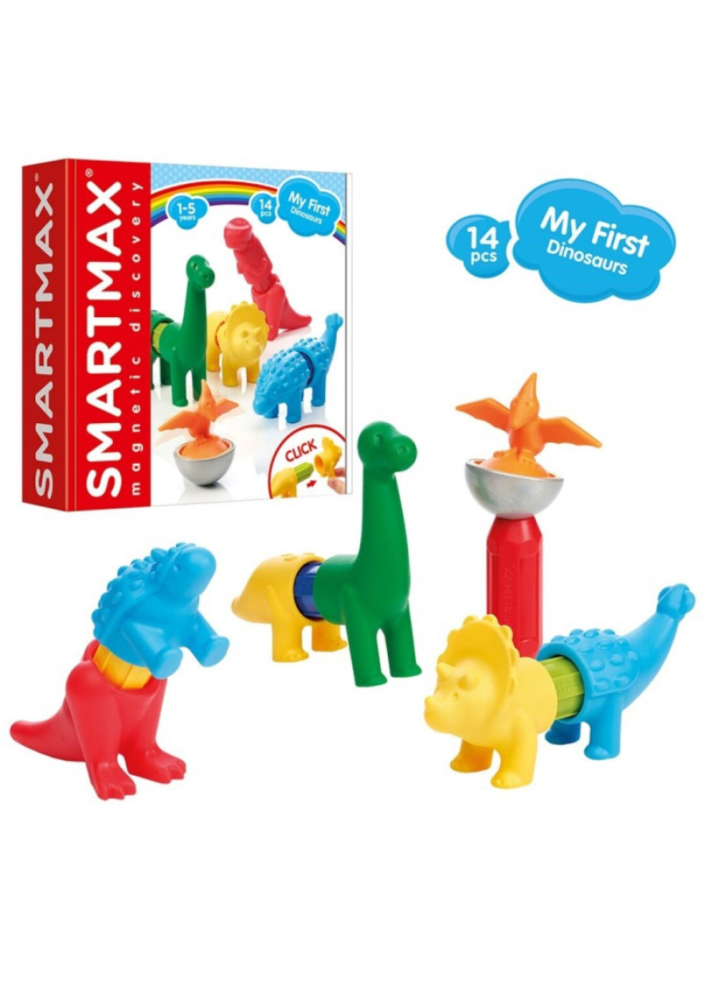 My First Dinosaurs introduce a los más pequeños en el mundo de los dinosaurios, así como en el del magnetismo de una forma segura. Las piezas con fromas de dinosaurios extra grandes encajan fácilmente en las barras. Todas las piezas son 100% compatibles con otros productos SMARTMAX.
