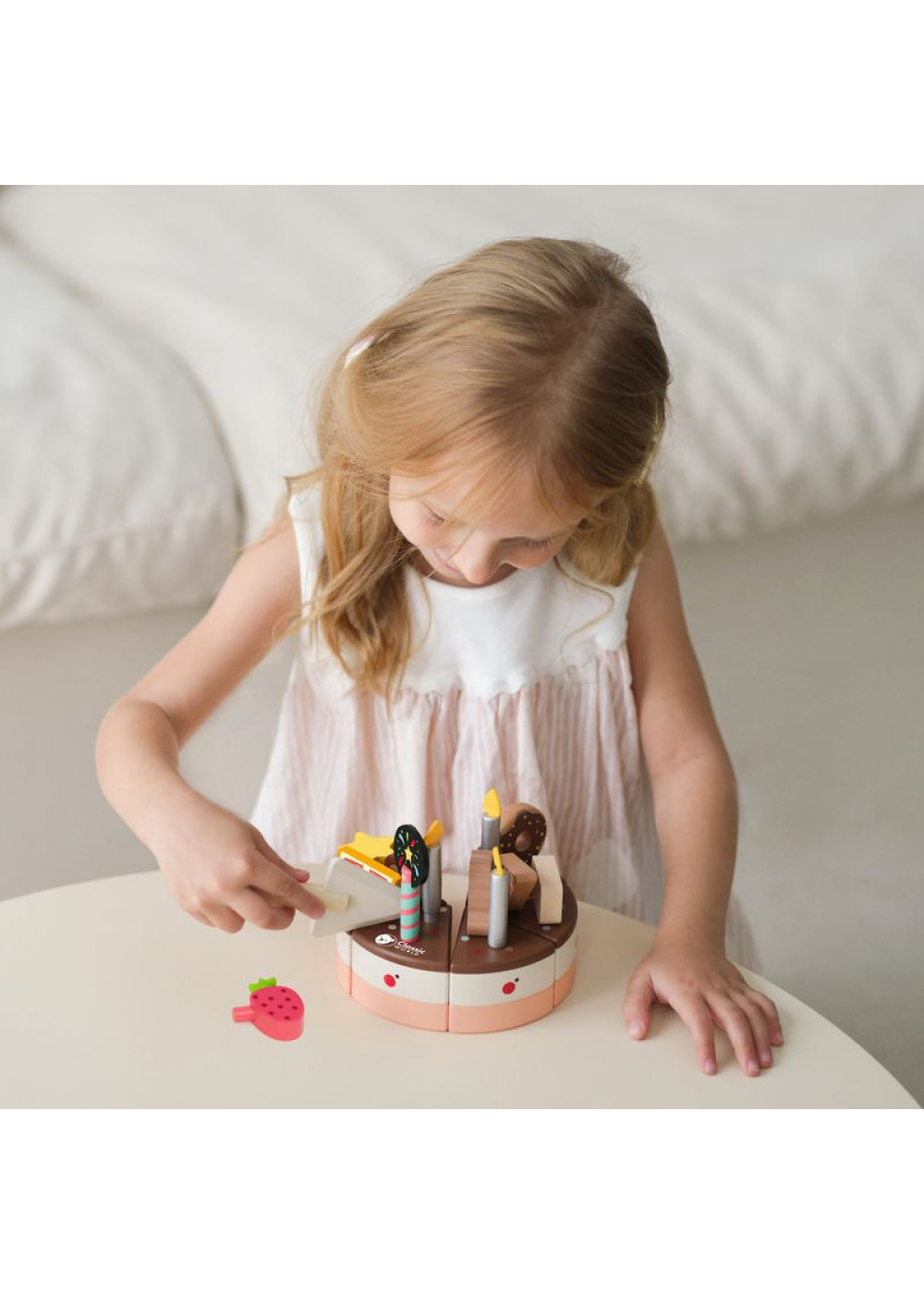 Usa el cuchillo para servir, corta un trozo y sopla las velas.