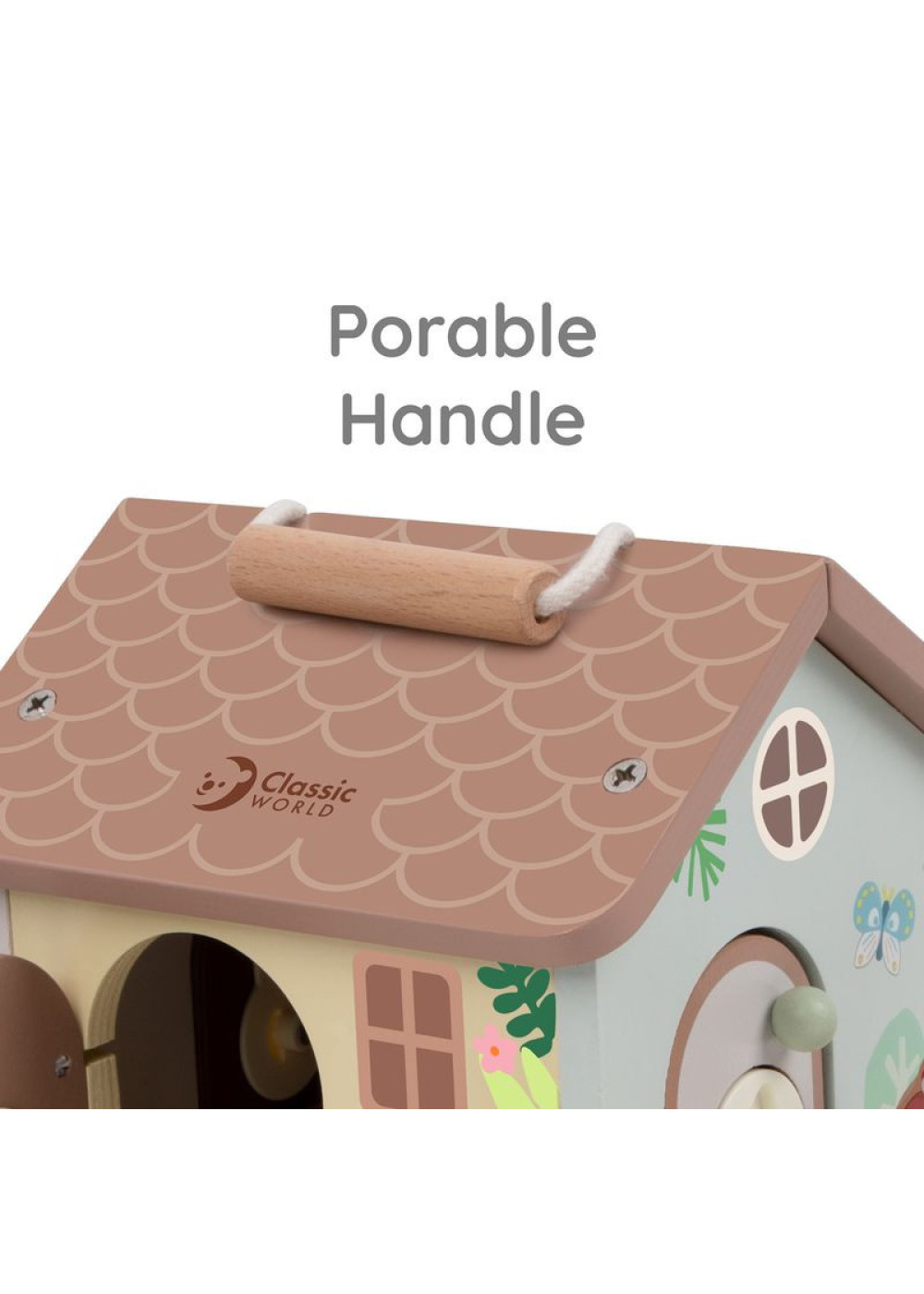 Los niños y niñas pueden interactuar con la casa abriendo y cerrando cada puerta, experimentando la alegría de explorar y estimulando su imaginación y creatividad.