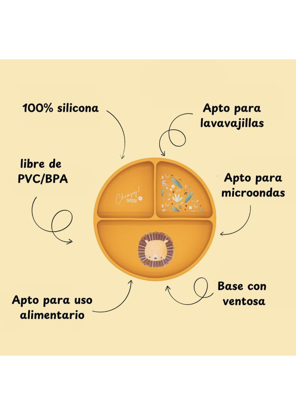 Cuenta con una base con ventosa que le permite adherirse a la mesa, garantizando la seguridad mientras el bebé está comiendo.