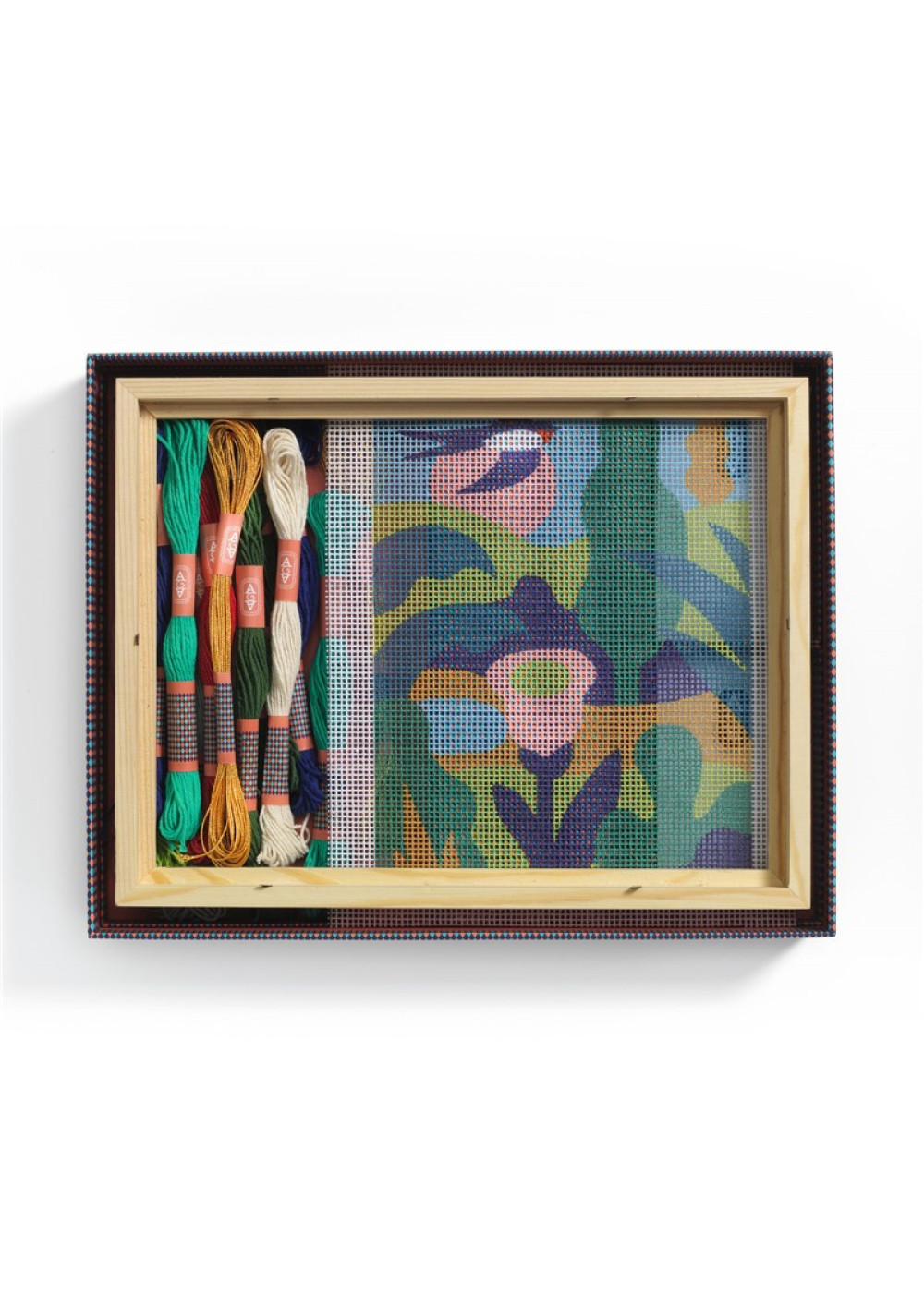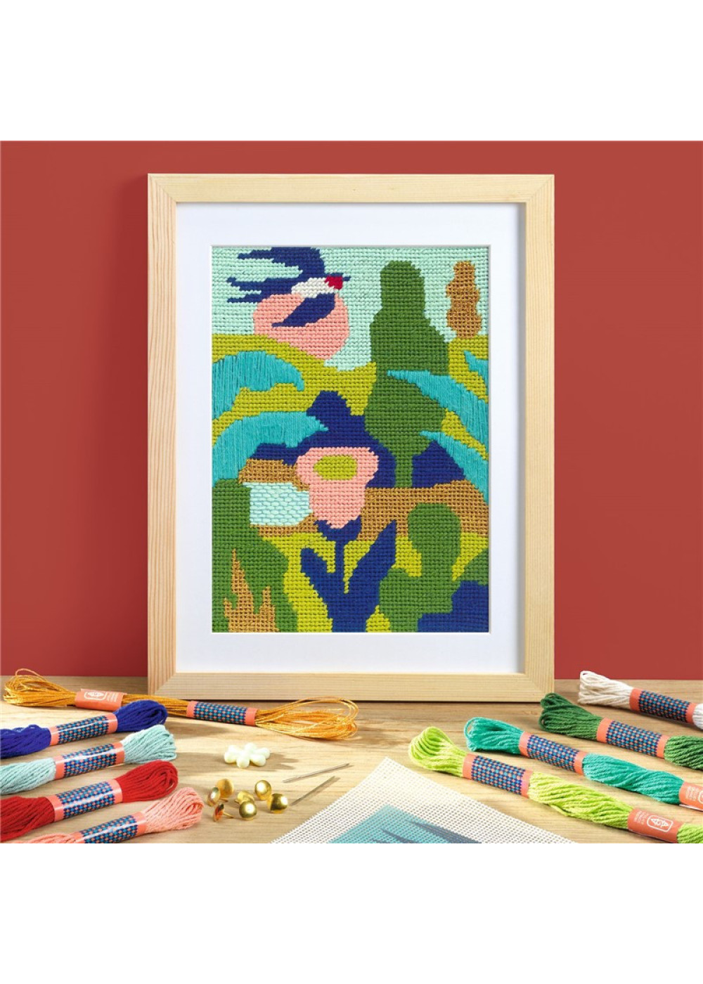 Descubre el bordado en cañamazo, un arte textil tan creativo como tradicional. Atelier 65 te invita a iniciarte en esta técnica bordando una ilustración de un hermoso paisaje. El bordado en cañamazo consiste en reproducir un diseño con un número preciso de puntadas sobre una tela impresa o con plantilla, utilizando aguja e hilos de colores. Puntada a puntada, el paisaje cobra vida con un resultado lleno de color y textura. Un video tutorial te guiará en cada paso para aprender la técnica adecuada. Una actividad tranquila para disfrutar a tu propio ritmo, en casa, y vivir una experiencia verdaderamente relajante. Contenido: 1 tela de bordado en cañamazo estampada a color, 8 x 15 metros de hilos de colores, 2 agujas, 1 enhebrador, 1 par de tijeras de bordado, 8 chinchetas, 1 marco de madera, 1 modelo guía, 1 folleto y 1 tarjeta con código QR para acceder al tutorial en vídeo.