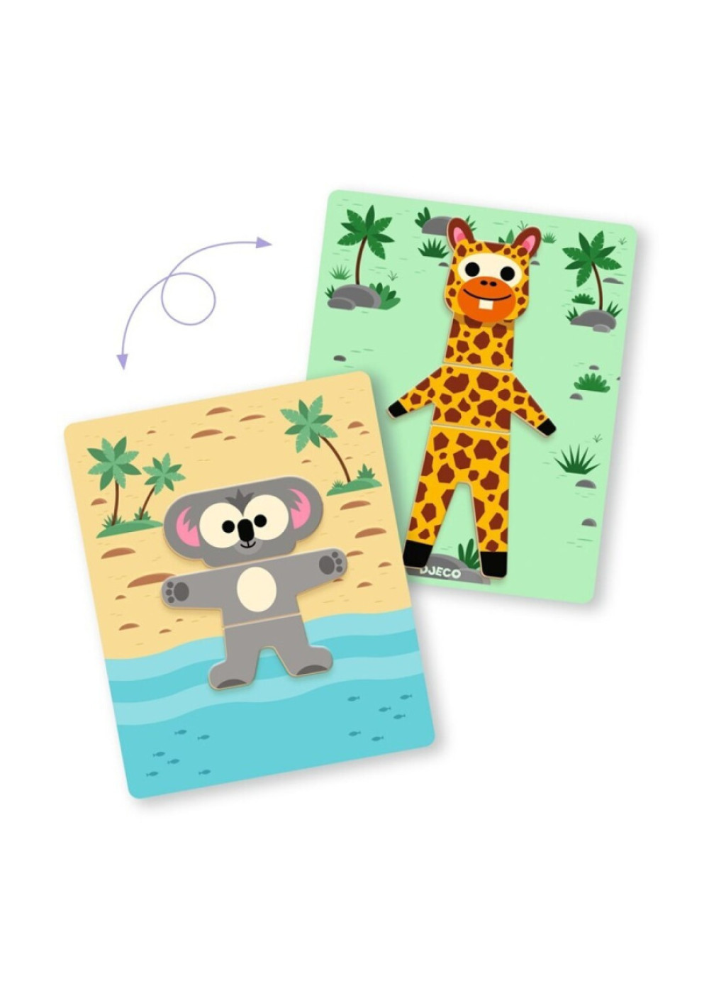Este juego incluye una caja metálica ligera en la que los niños pueden jugar con imanes de madera para reproducir animales o crear combinaciones nuevas. Las tarjetas-modelo ayudan a reproducir 8 animales completos, pero lo divertido es poder mezclar las piezas para inventar animales esbozados y originales.