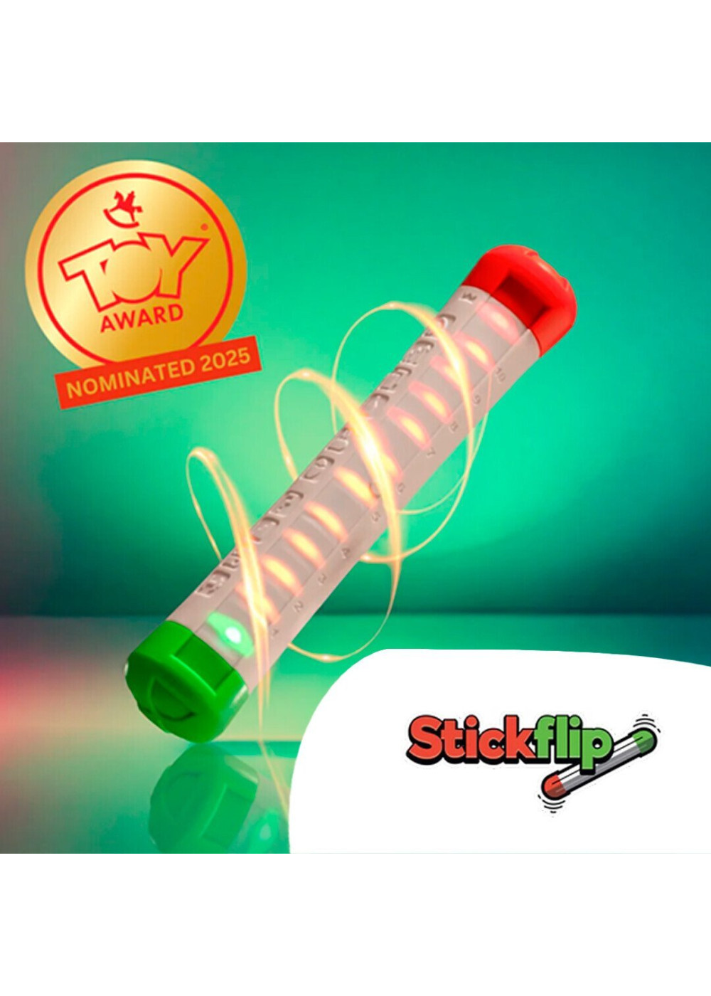 ¿Cuántos giros puedes hacer con un solo lanzamiento de un palo? Stickflip es el palo definitivo para lanzar, contar y mostrar automáticamente los giros que consigues. Retáte a ti mismo y a tus amigos para ver quien es el más hábil en cada uno de los juegos que incluye y demuestra tus dotes como lanzador. Stickflip incluye 10 juegos con los que ponerte a prueba, ya sea solo o con otros jugadores. Además tiene juegos de 3 tipos: juegos de girar, juegos de lanzar y juegos para expertos. Con ellos deberás superar el número de giros en el aire, realizar combinaciones de giros, recordar secuencias de giros y mucho más. Además, en cada juego se obtiene una puntuación hasta un máximo de 10, y a su vez la puntuación máxima en cada juego se suma a tu ranquin individual. En definitiva, Stickflip es un innovador juguete con un software especialmente desarrollado para entrena de forma lúdica las habilidades motricesa de lanzamiento y recepción en juegos individuales y en equipo. Es apto para niños, adolescentes y adultos, tanto en interiores como en exteriores.