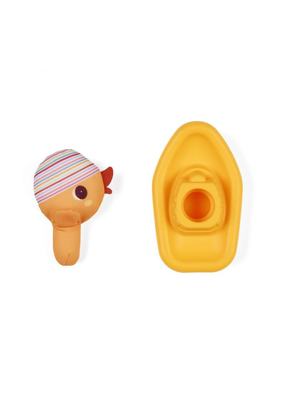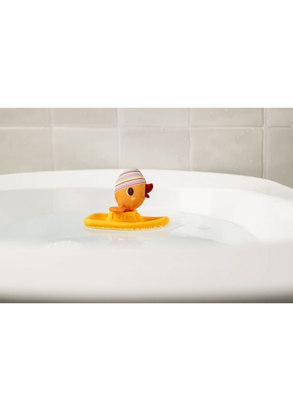 ¡Rumbo a la aventura con Gaspard el pato! Sentado en su pequeño barco de silicona, flota alegremente en el baño y lleva al bebé a divertidas historias acuáticas.