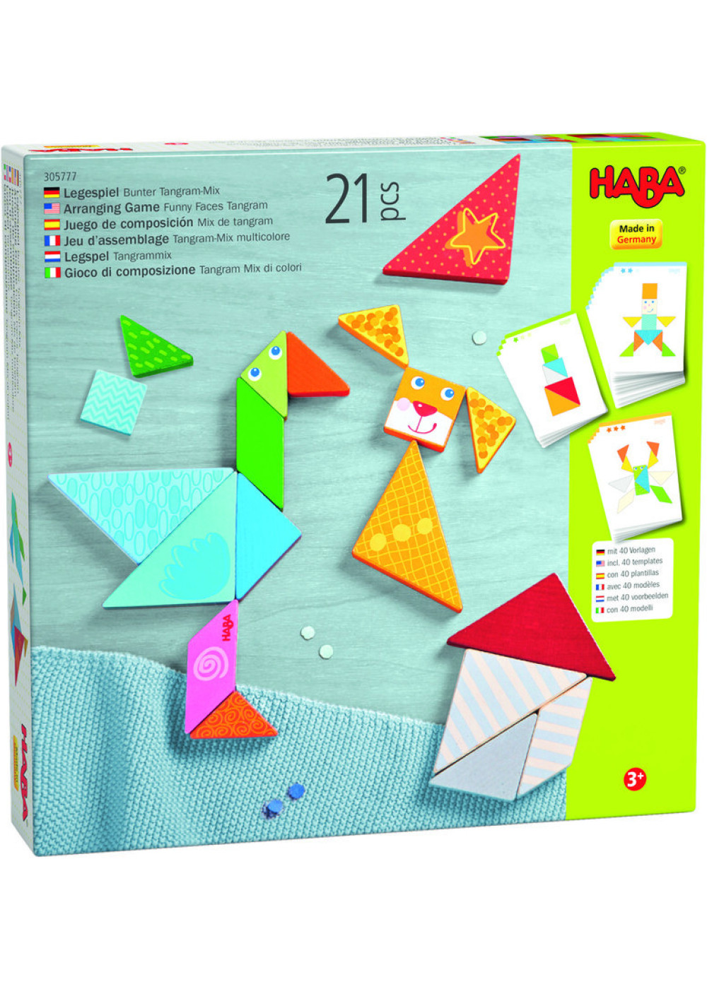 Hace un momento era un perro y ahora hay ahí un cisne... ¡Estas cosas solo ocurren en el tangram! Colocadas con ingenio unas al lado de las otras, estas piezas impresas y de alegres colores dan como resultado las formas geométricas y las figuras más diversas. Y gracias a las posibilidades de composición - con plantilla o completamente libre - ¡crece la ilusión por experimentar de nuestras pequeñas y pequeños artistas!
